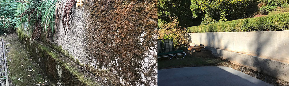 A relatively new technique, Soft Washing utilizes commercial cleaning solvents and low pressure water washing to effectively clean surfaces without damaging the material underneath. This is now the preferred cleaning method for houses, roofs, fences and decks. We use a special spray gun to apply proprietary cleaning solutions to your house or roof — without pressure. The solution “works” on the algae, mildew and grime — then it is gently washed away, leaving you with surfaces that look like new