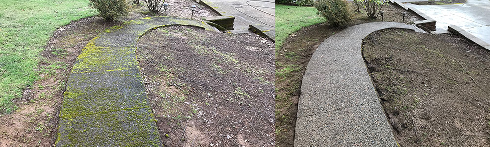 This is what most people think of when the term “pressure washing” comes up, and in many case it is still the most effective cleaning technique. Our equipment uses water with pressures up to 3,500 psi to blast away even hard-to-remove grime and build up, leaving surfaces sparkling clean. This process is normally only used on hard surfaces, such as driveways, sidewalks and patios, etc..