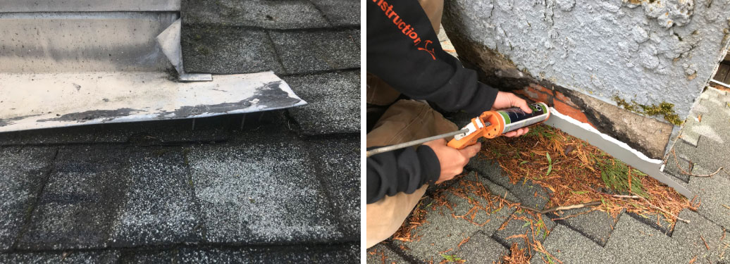 Caulking Torn ridge caps or nailing back loose gutters (included)